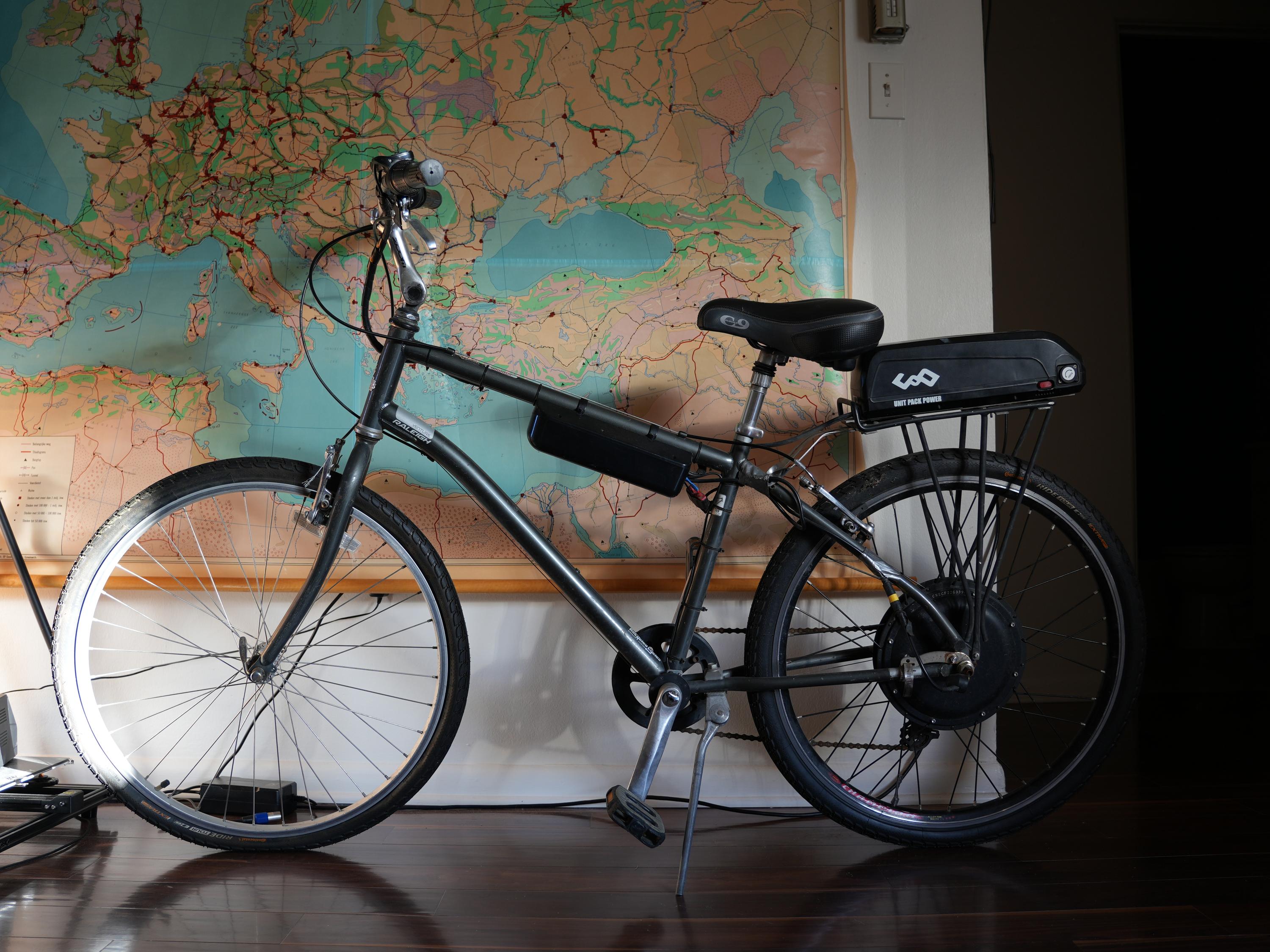 By college it received an upgrade. As I started thinking about urban planning I also started thinking about the utility of ebikes as a better way of completing certain errands in my life. So my dad, upon hearing me bring it up one too many times, bought it for my christmas present. Well not an ebike. An ebike conversion kit!