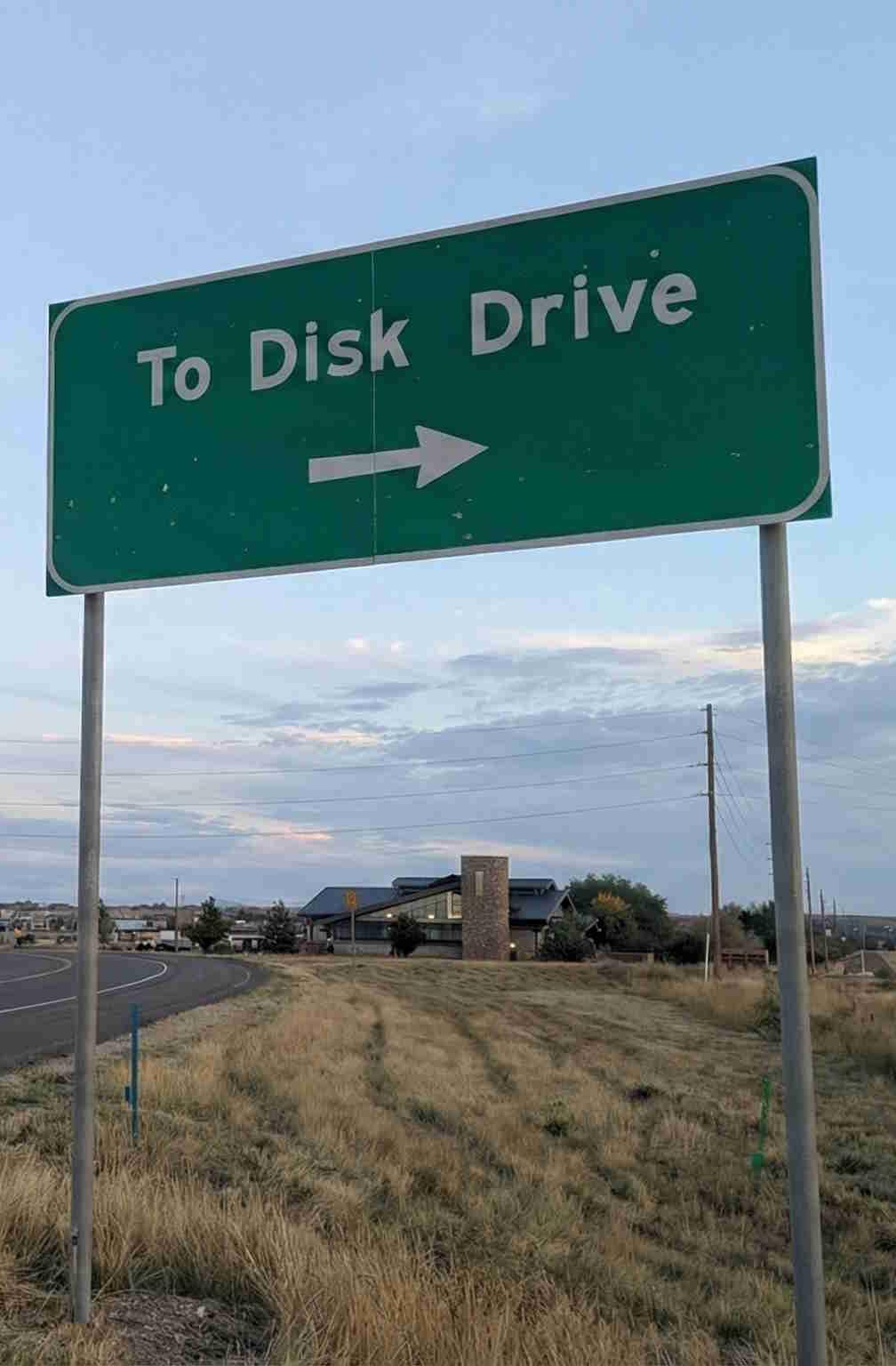 An especially funny thing I saw on the way back was a sign for Disk Drive, pointing down a pretty empty road. I learned later this was the location of StorageTek’s headquarters, a company that specialized in tape reading and writing. It has since been acquired by Oracle, but the old headquarters is long gone, with this funny street sign serving as a reminder.