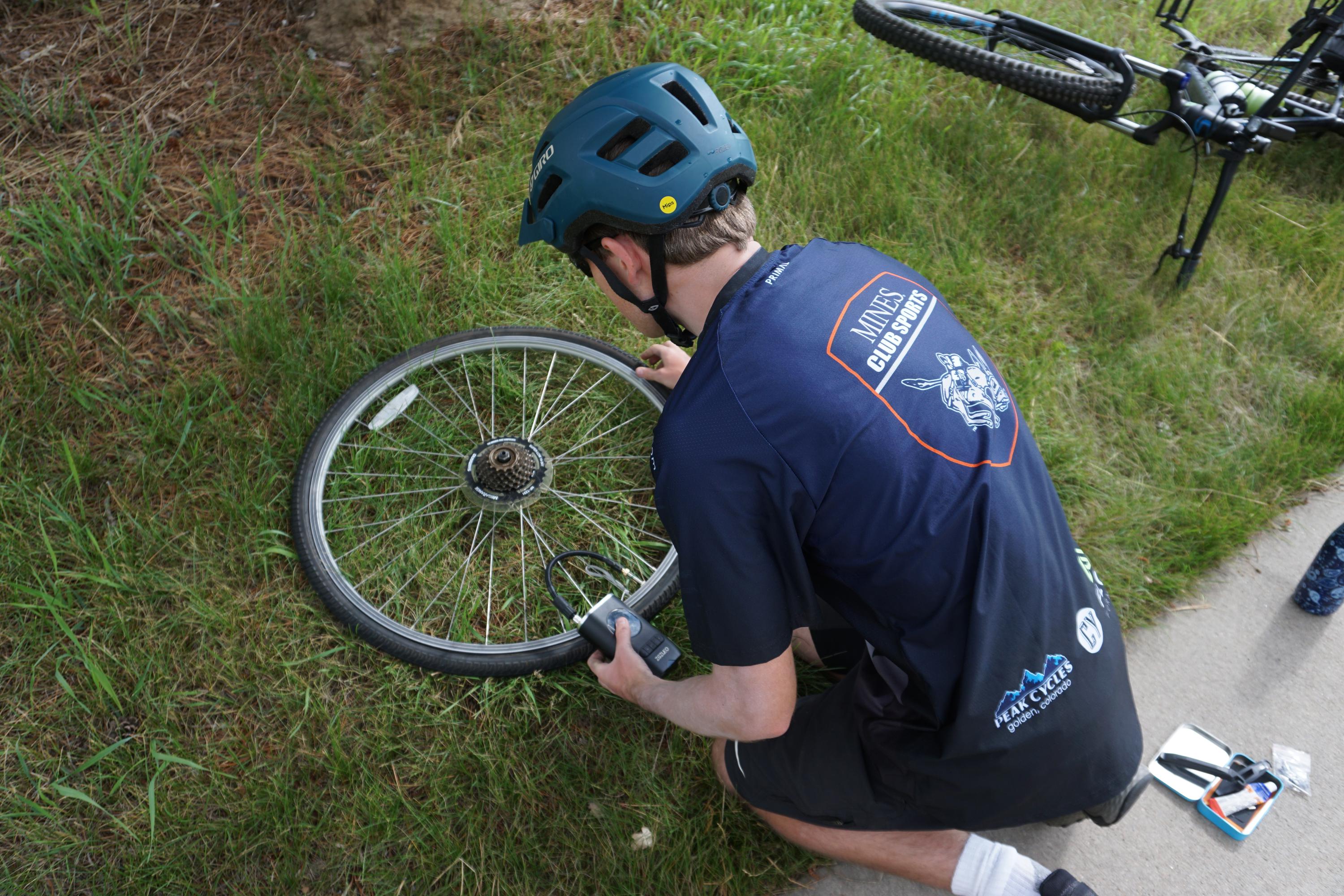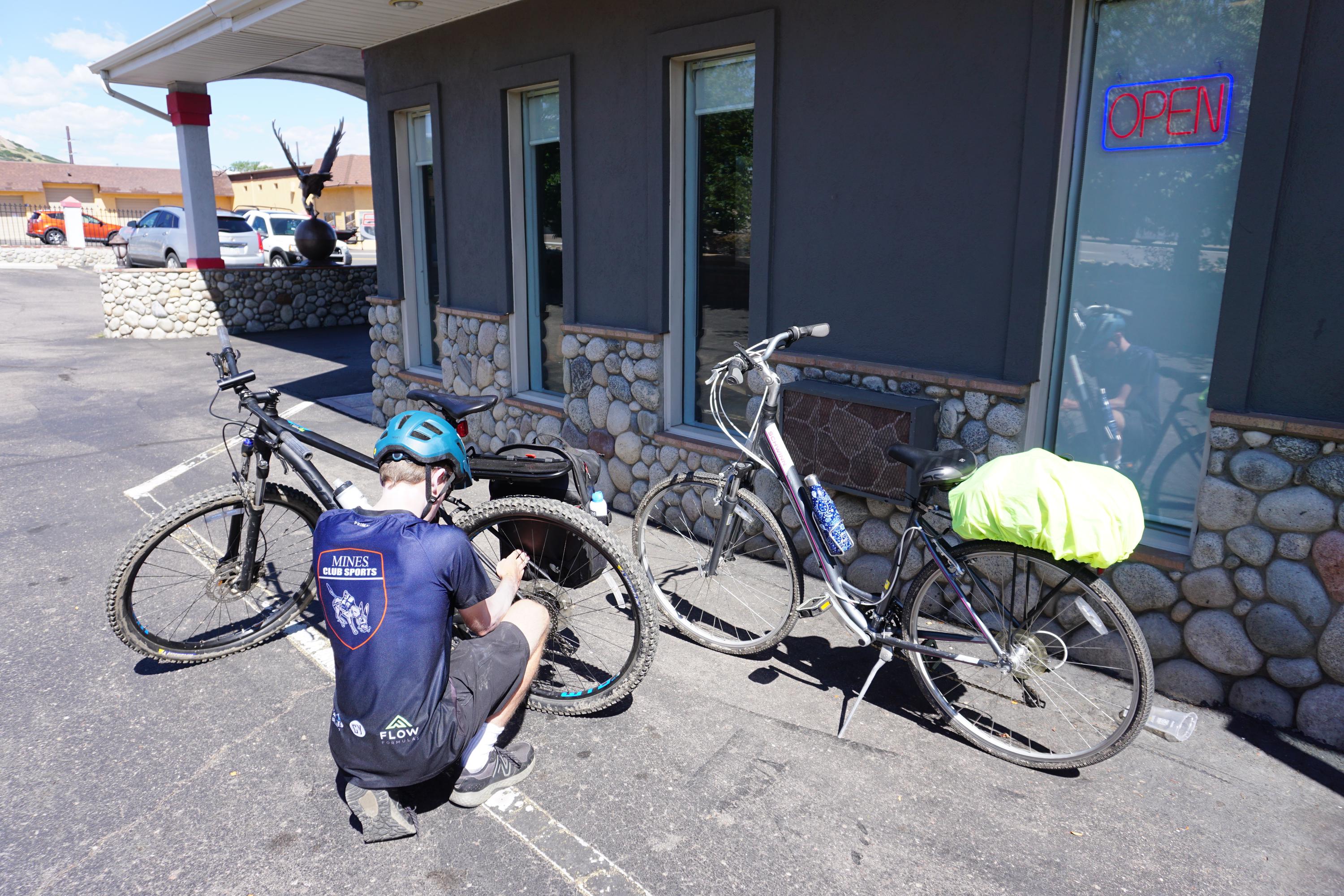 We both primarily relied on convenience stores to stock up on food and water, as I wanted to simulate bikepacking for later adventures. We unintentionally simulated another aspect of bikepacking when my beater sprung a leak, requiring us to patch the hole.
